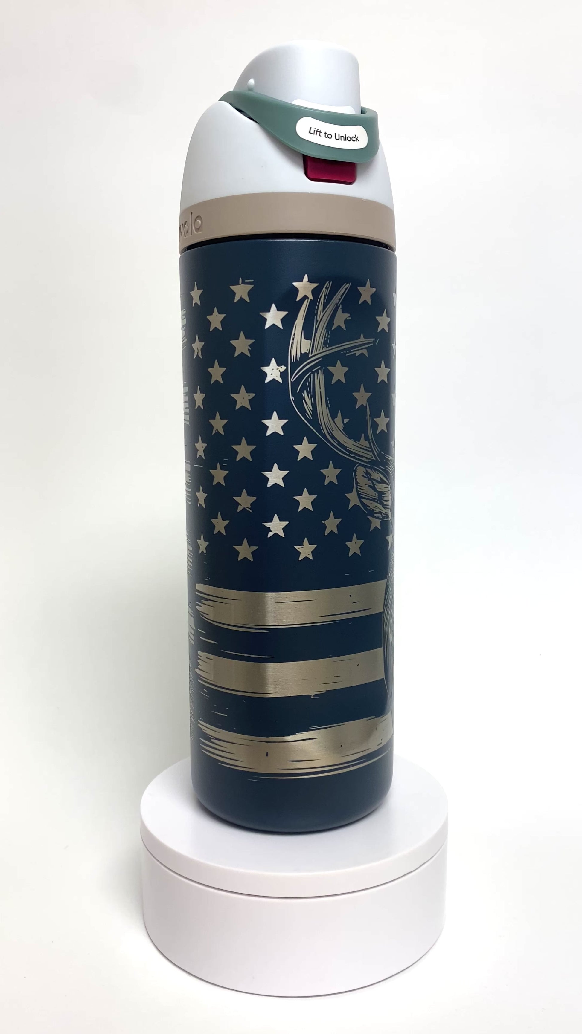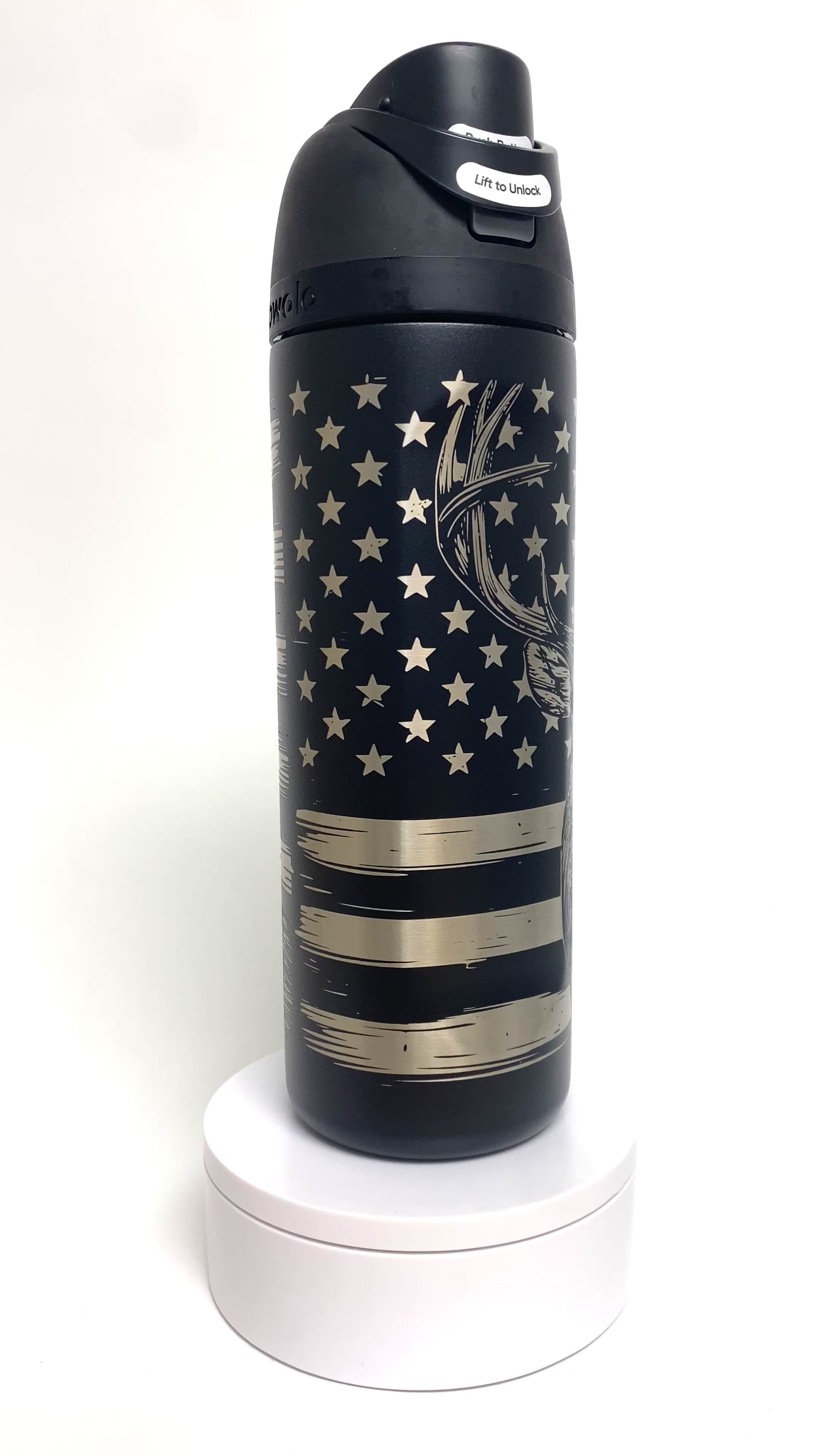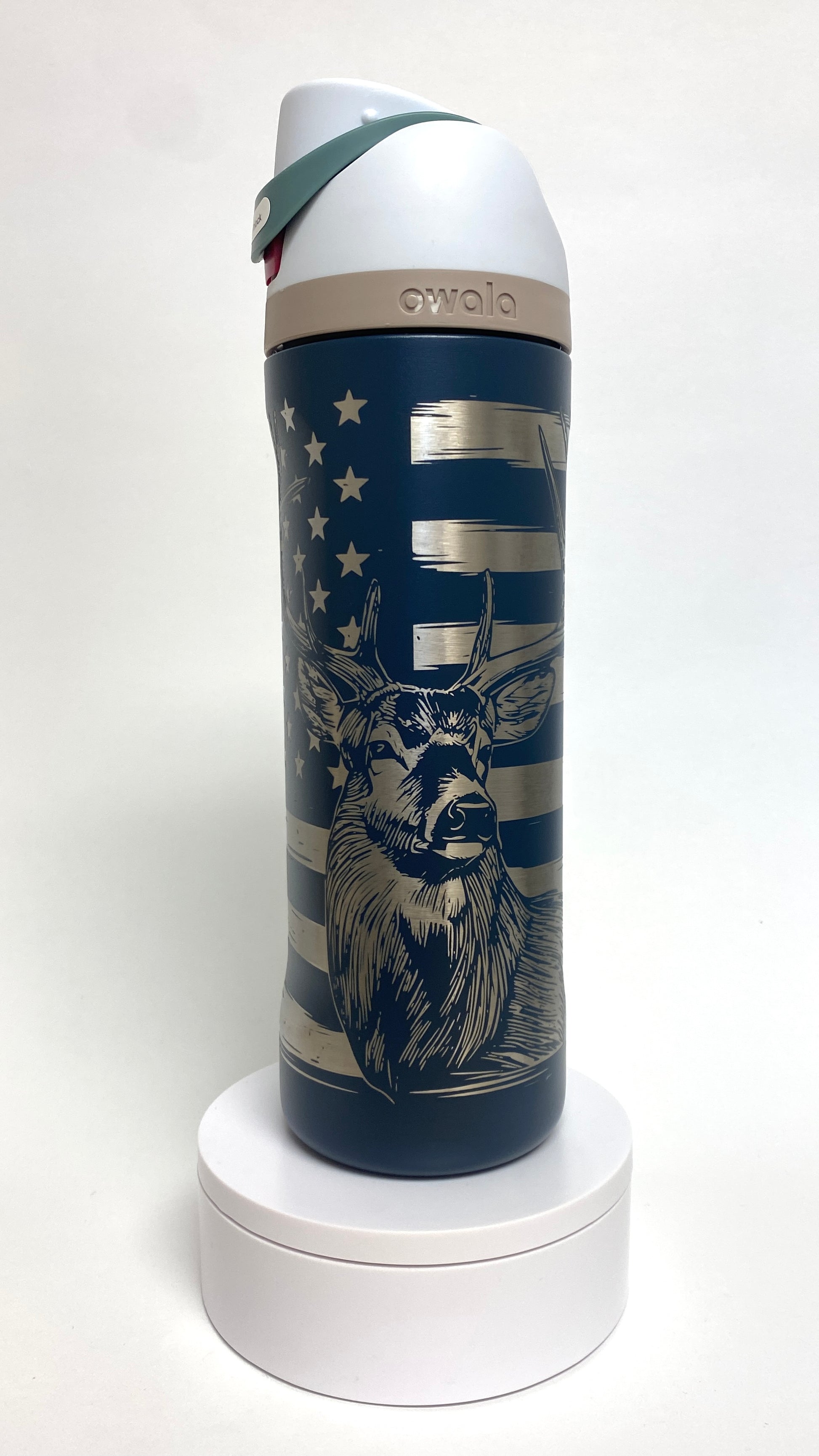 Buck American Flag | Engraved Full Wrap | Owala Water Bottle 24 oz.