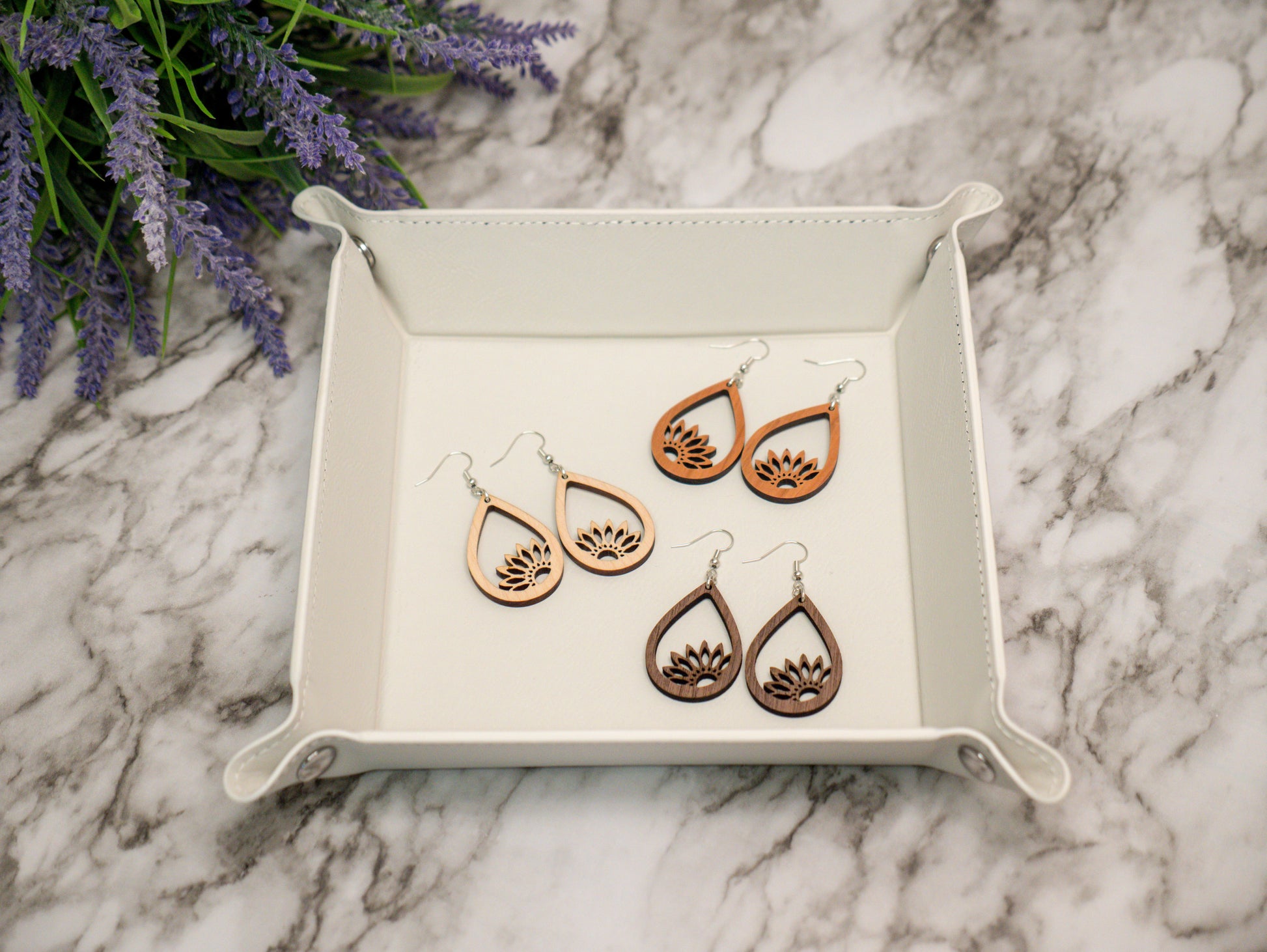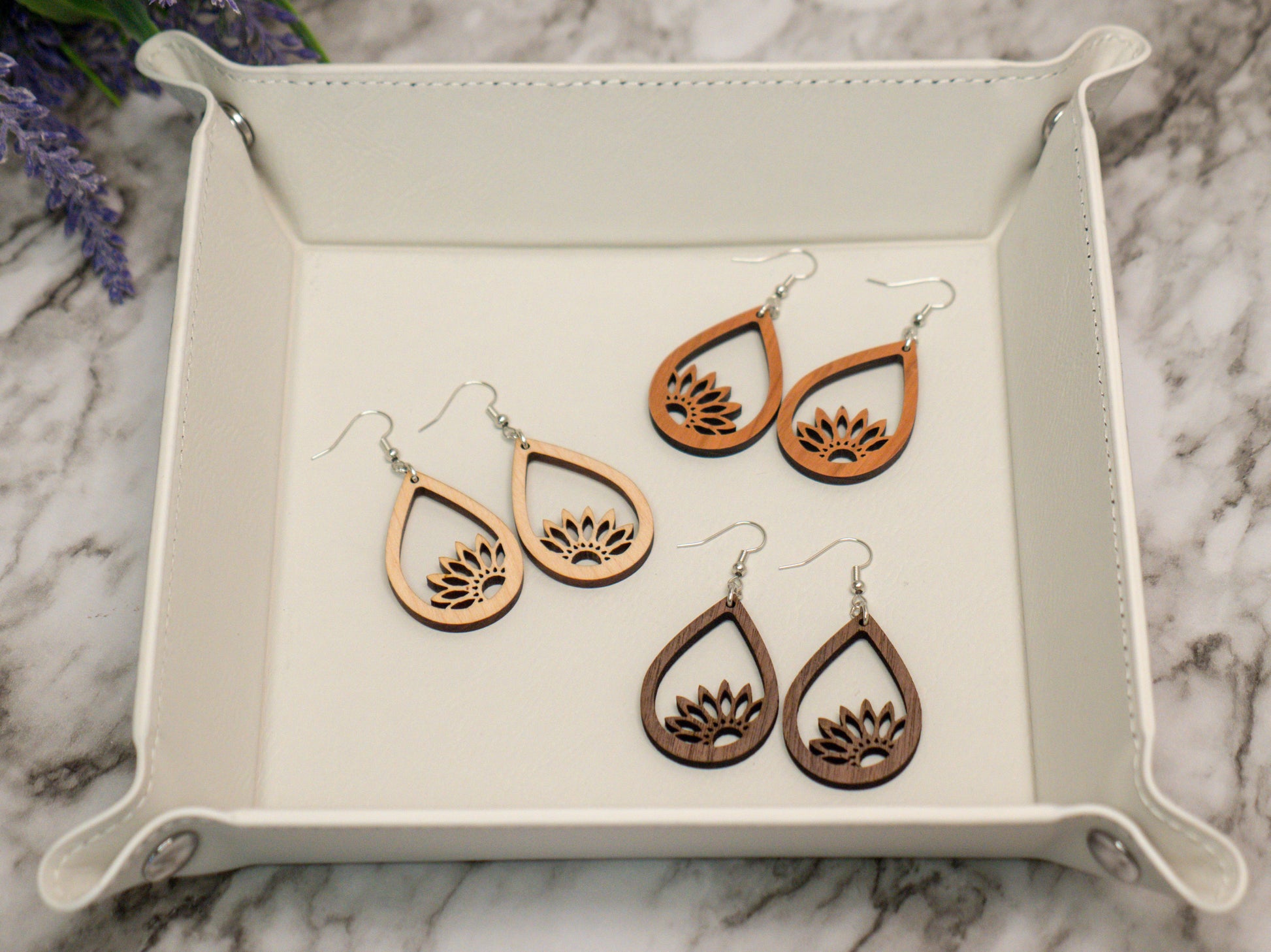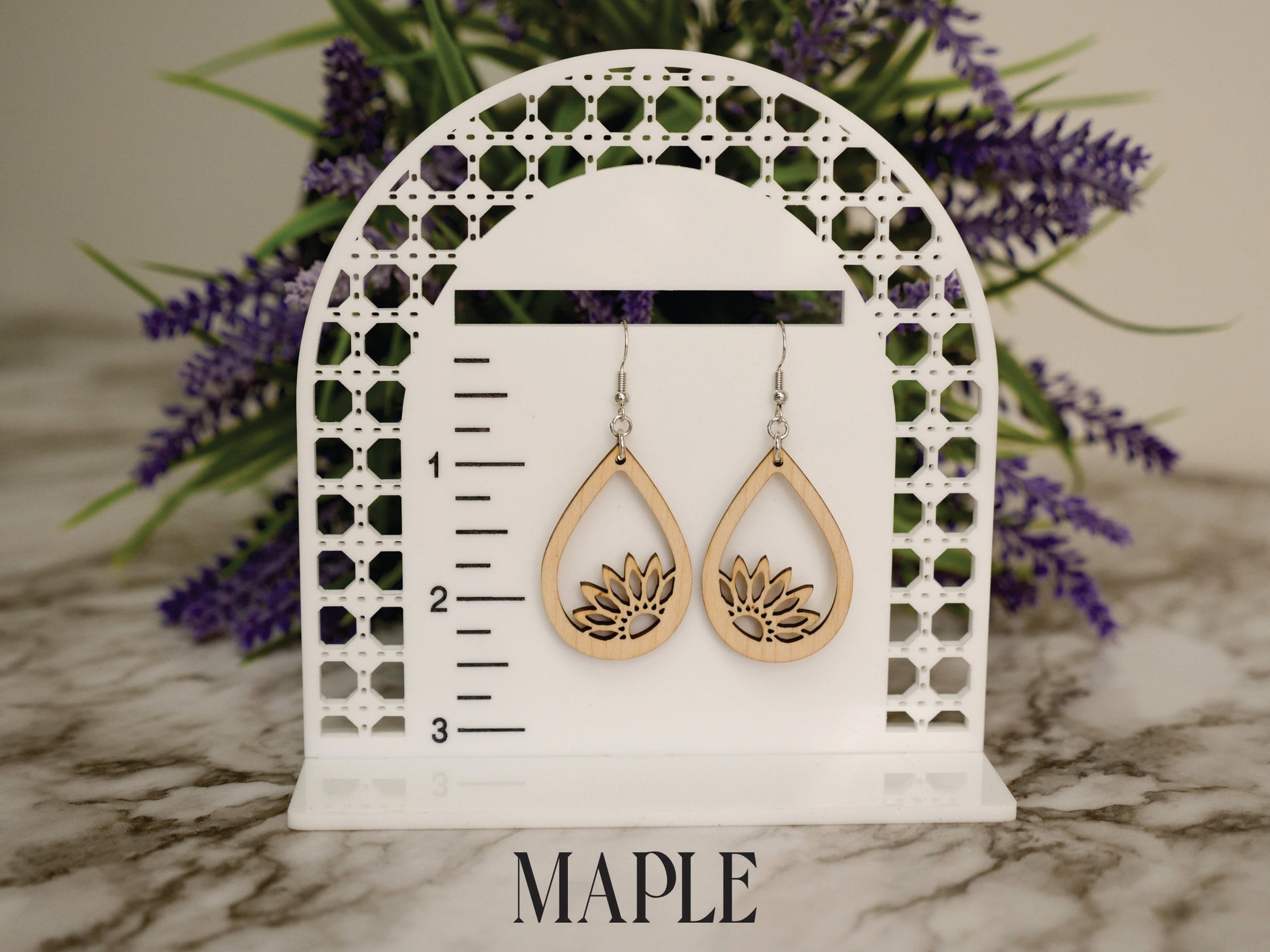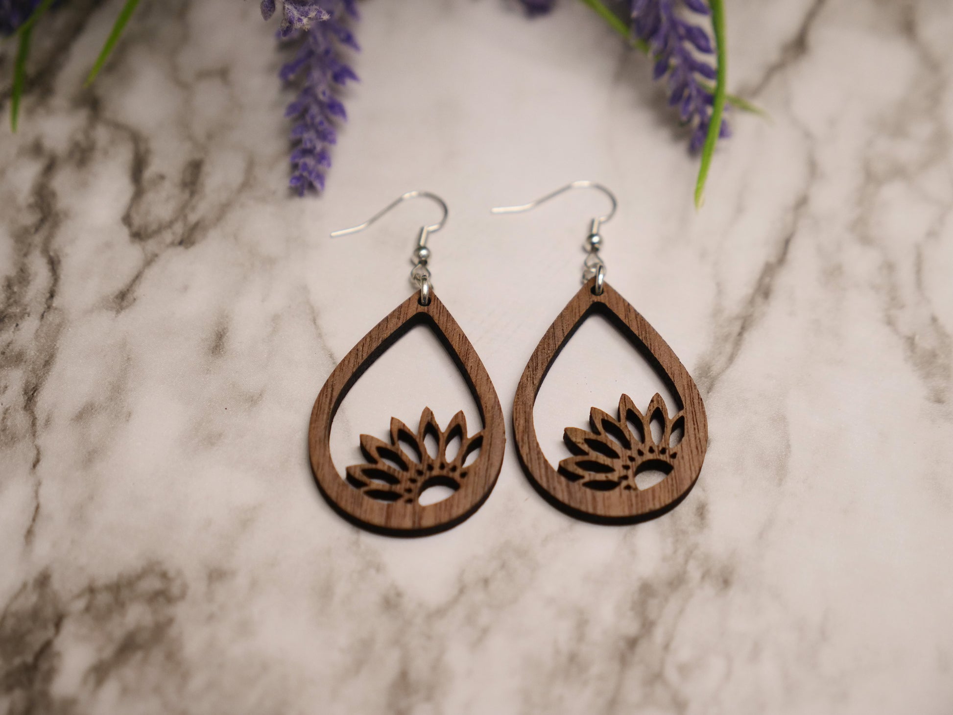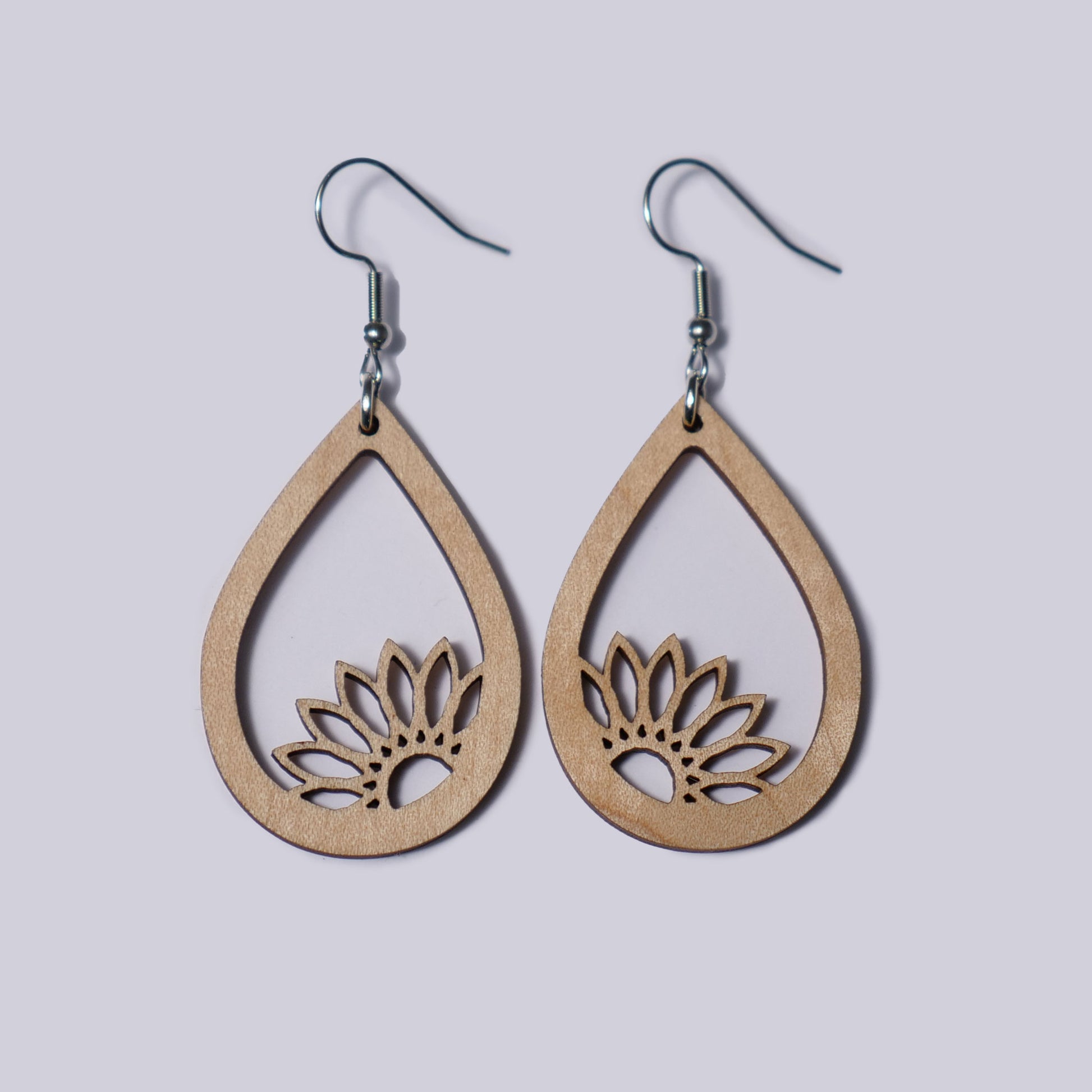 Discover the natural beauty of our Wood Earrings. These stunning Half Flower Wood Earrings feature a delicate floral design made from high-quality wood. These earrings are lightweight and comfortable for all-day wear. Elevate your style with a touch of nature and bring a unique and beautiful statement to any outfit. Perfect for yourself or the nature-lover in your life.