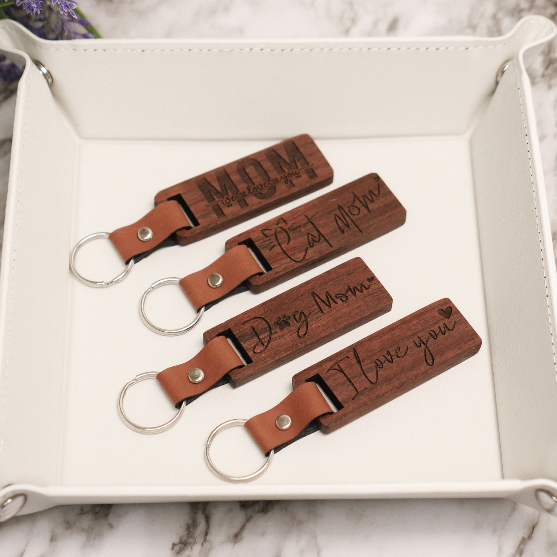 Crafted from rich, natural walnut wood, this stylish keychain adds a touch of nature to your everyday carry. The natural variations make each keychain unique. Perfect for keeping your keys organized and adding a touch of sophistication to your belongings.